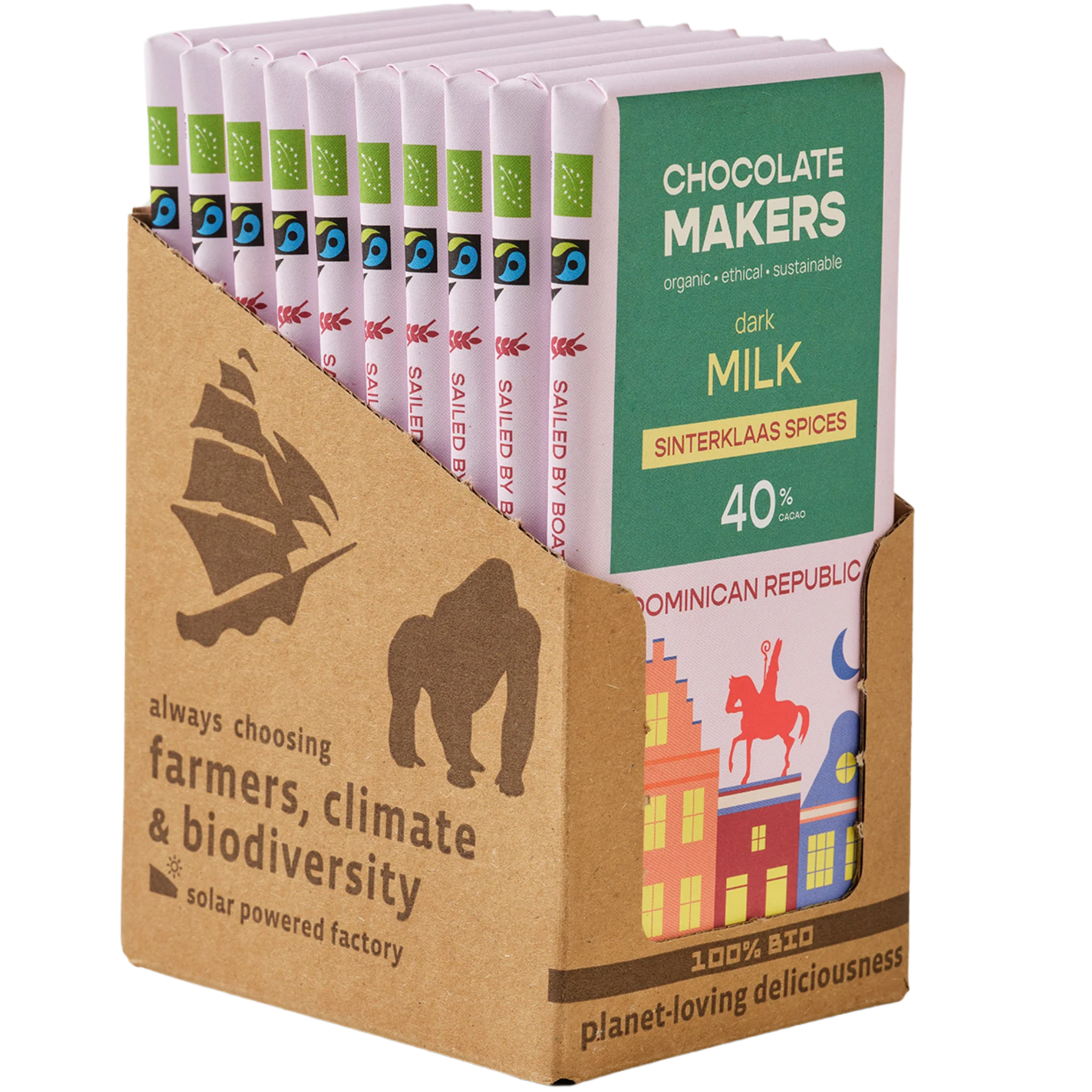 Op zoek naar een duurzaam alternatief voor de chocoladeletter? Deze melk reep met Sinterklaaskruiden is gemaakt met Trinitario cacabonen uit de Dominicaanse Republiek. De cacaobonen voor deze bijzondere reep worden met het Zeilschip de Tres Hombres op windkracht uit de Caraïben gehaald en gebracht tot aan de kade van Amsterdam. Met het eten van deze chocolade steun je emissievrij transport!