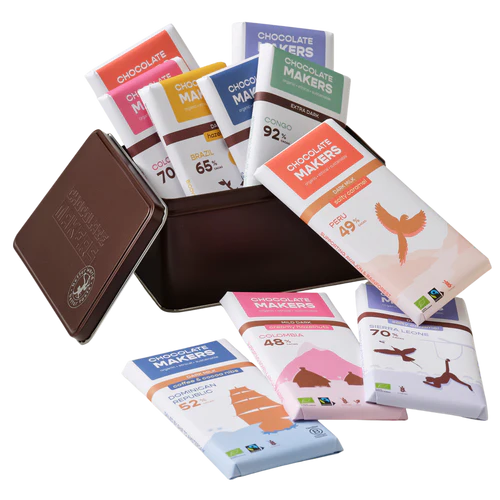 Onze naam zegt het al, wij maken chocola! Niet zomaar chocola, maar de lekkerste, meest eerlijke en duurzame chocola die je kan vinden. In onze eigen duurzame fabriek in Amsterdam doen wij alles zelf, volledig van boon tot reep. Daarbij zijn wij dan ook het enige Nederlandse chocoladebedrijf dat elke schakel in de keten zelf in de hand heeft en waardoor wij het proces zo duurzaam mogelijk kunnen doen. De hoge kwaliteit bio Fairtrade ‘single origin’ cacaobonen kopen wij direct bij de boeren in Congo, Peru, Colombia en Dominicaanse Republiek voor een goede en eerlijke prijs. Vier origines met elk een eigen verhaal. Branden doen wij zelf en nemen hier ook de tijd voor. Eerlijk, stoer, biologisch, Nederlands en ècht lekker. De bonen komen op windkracht naar Amsterdam met het schip de Tres Hombres, volledig clean transport dus.