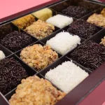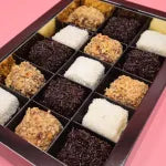 Bij de sociale onderneming Blooming Bakery jagen we dromen na, werken we aan ambities en zetten we in op persoonlijke groei. Dat proef je in onze taarten. Die zijn vers, ambachtelijk en met liefde gemaakt. Deze sociale onderneming wordt gerund door slachtoffers van geweld en studenten. In de bakkerij doen zij waardevolle succes-, leer- en werkervaring op. Samen werken zij aan een positieve toekomst. Blooming Bakery is een onderdeel van Future Factory, welke een dochteronderneming is van stichting Fier. Fier is het landelijk expertise- en behandelcentrum op het terrein van geweld in afhankelijkheidsrelaties. Een luxe selectie bonbons met heerlijke vullingen met de smaken pistache, hazelnoot en passievrucht. Perfect om te delen of om als cadeau te geven!